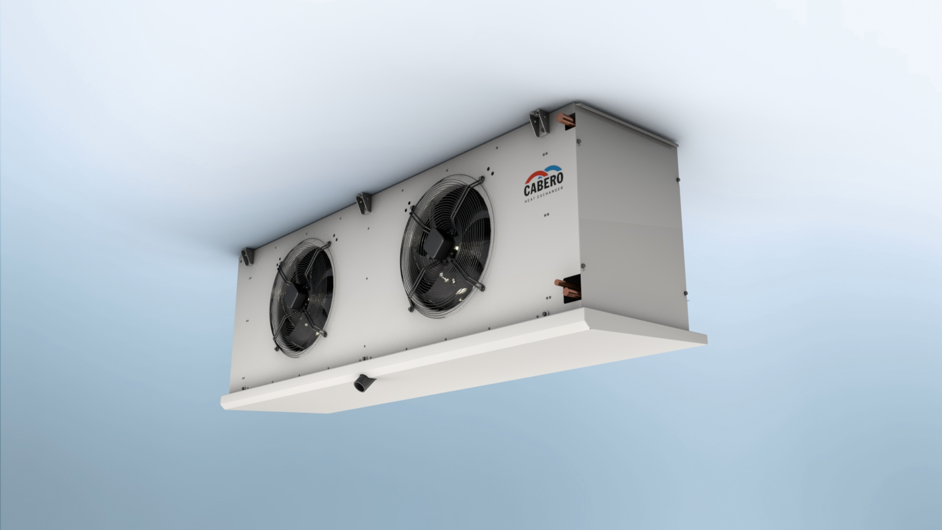 Die in der Kältetechnik im Einsatz befindlichen Luftkühler unterscheiden sich zwischen drückenden und saugenden Ausführungen über das Wärmetauscherpaket (Wärmeübertragerblock). Bei der saugenden Ausführung befindet sich der Ventilator im abgekühlten Luftstrom, sodass die Wärmelast des Ventilators den abgekühlten Luftstrom zugeführt wird und diesen erwärmt. Dabei senkt sich gleichzeitig die relative Luftfeuchtigkeit des Luftstromes. Bei der drückenden Ausführung befindet sich der Ventilator im Luftstrom vor dem Wärmetauscherpaket, sodass die Wärmelast des Ventilators im Kühlungsprozess des Luftkühlers Berücksichtigung findet und die relative Feuchte entgegen der saugenden Ausführung nahezu konstant gehalten werden kann. Da eine hohe relative Feuchte im Luftstrom ausschlaggebend für den Wasserhaushalt und die Transpiration des Produktes ist, wurden CABERO Obst- und Gemüsekühler in drückender Ausführung konzipiert, um somit auch den geringsten negativen Einflüssen auf das Kühlprodukt entgegen halten zu können. Je nach Anwendungsfall werden optimierte Lamellengeometrien und dazu abgestimmte Lamellenabstände zum Einsatz gebracht um den Konditionen des Produktes und der Lagerung im vollen Umfange zu entsprechen. Durch die großen Wärmeaustauschflächen und die angepassten Luftvolumenströme, können CABERO Obst- und Gemüsekühler ein sehr geringes Dt (Dt = Verdampfungstemperatur bzw. Ethylenglykoleintrittstemperatur – Lufteintrittstemperatur) darstellen. Dieses ist der ausschlaggebende Faktor für die sehr geringe Entfeuchtung der Lagerprodukte und für die Erhaltung der Qualität des Produktes. Das Ziel, die Werthaltigkeit Ihres Kerngeschäftes zu schützen und zu optimieren wird mit den neuen CABERO Obst- und Gemüsekühlern mehr als entsprochen - ganz nach unseren Firmenmotto: engineered to succeed.